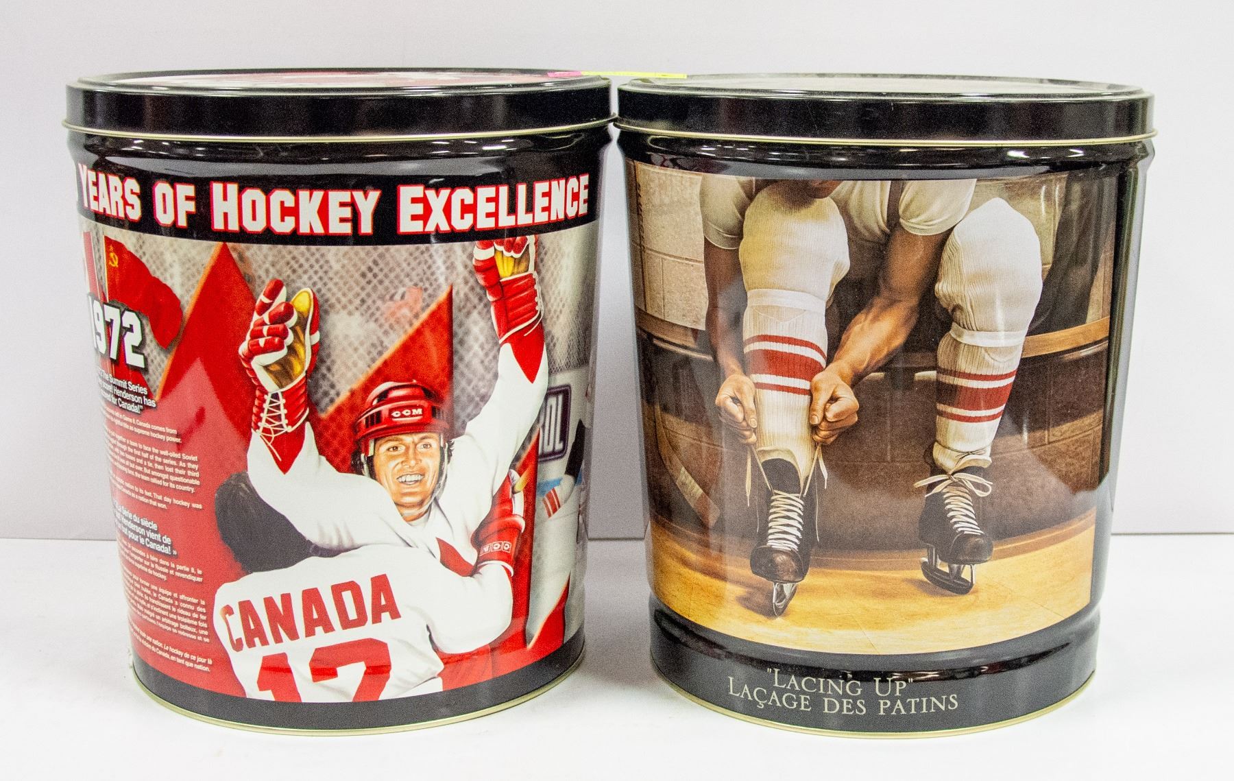 PAIR OF COCA-COLA HOCKEY POPCORN TINS