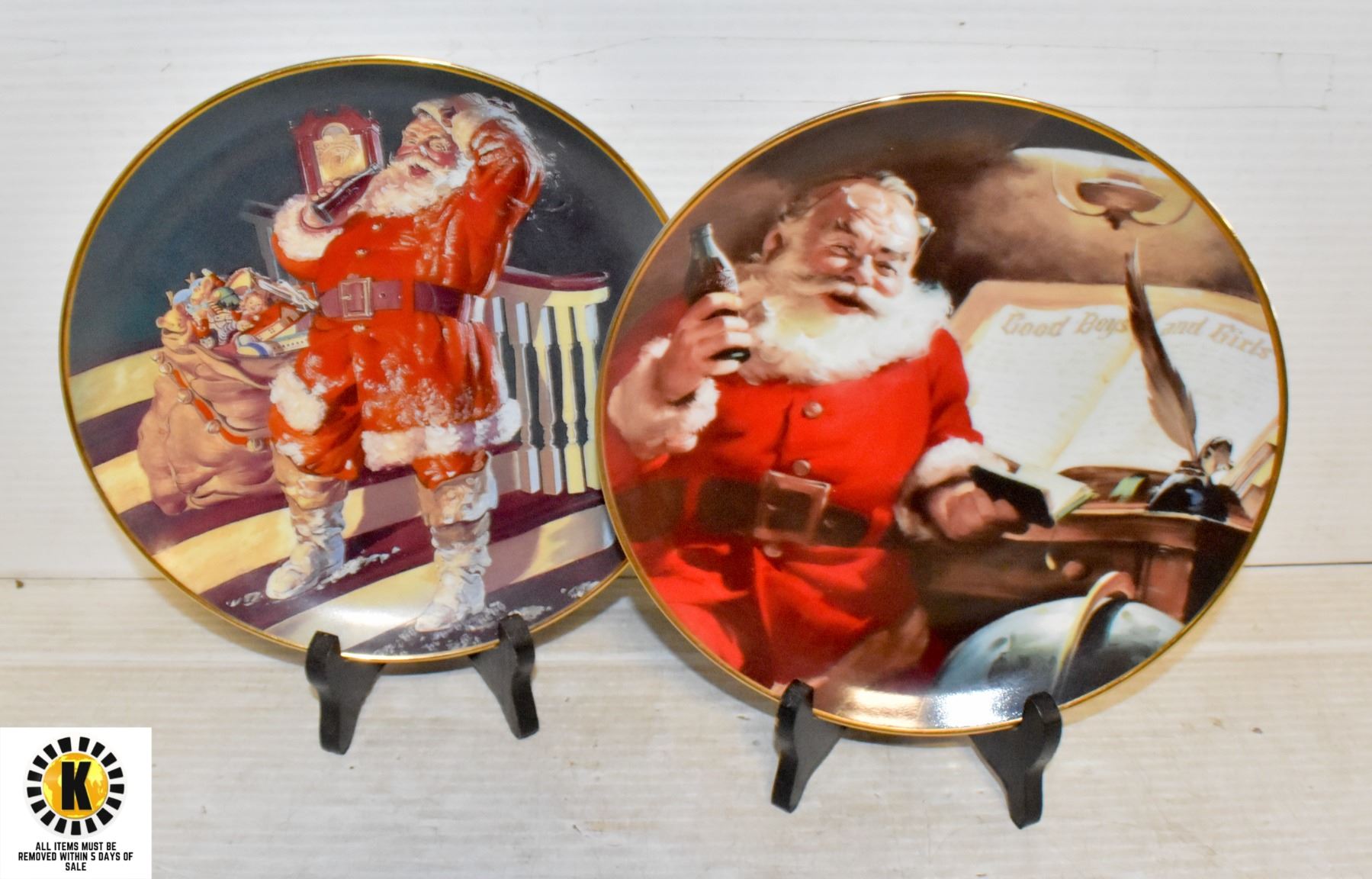 PAIR OF COCA-COLA PLATES WITH STANDS