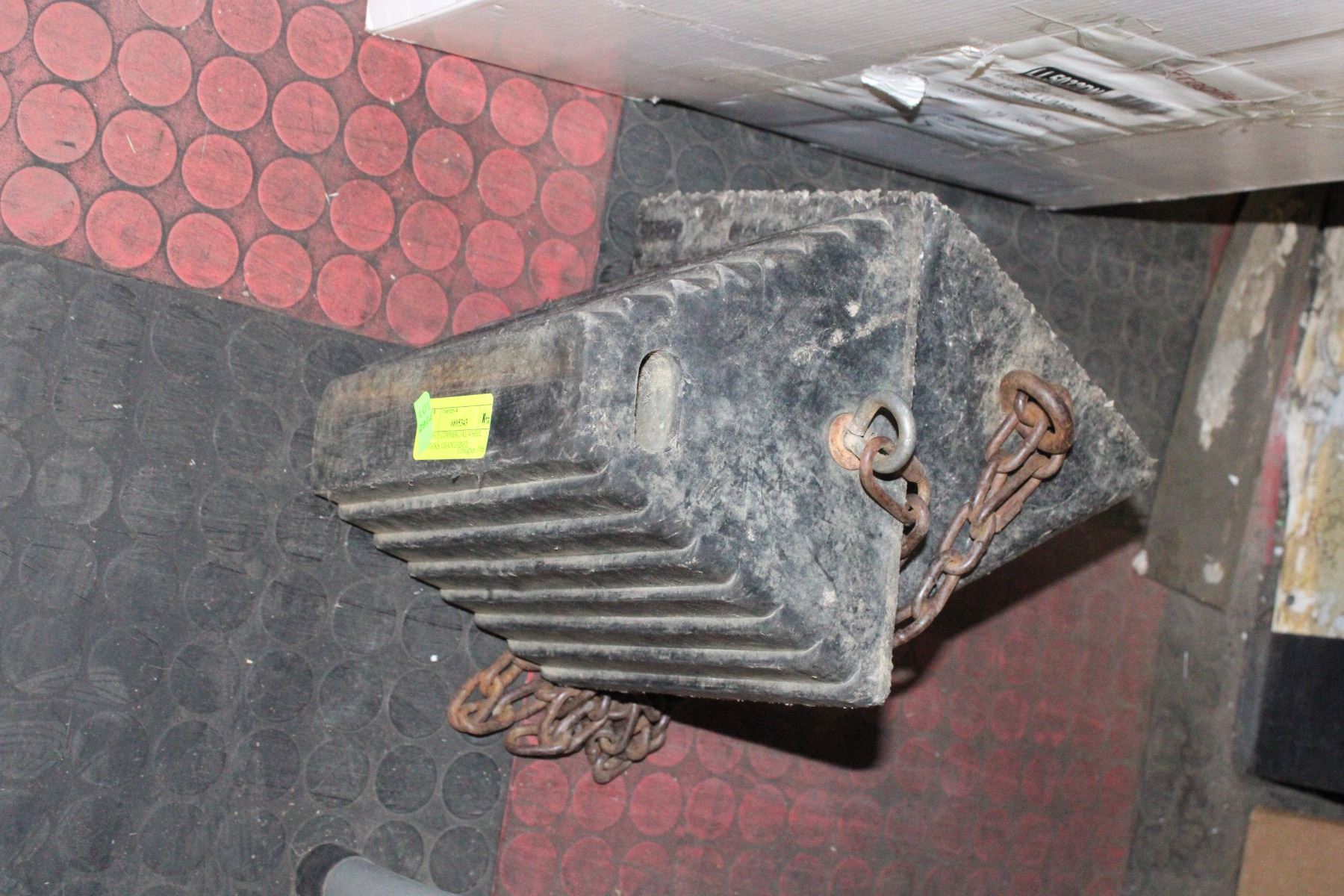 PAIR OF COMMERCIAL WHEEL CHOCKS, CHAIN JOINED