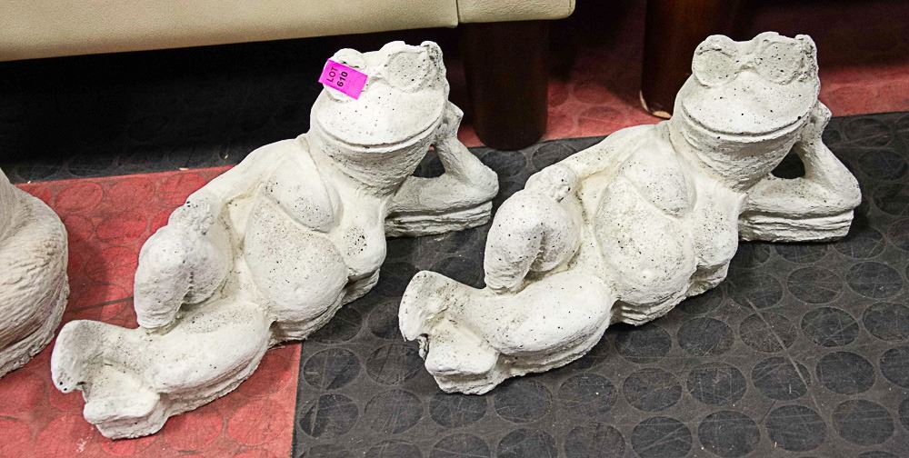 PAIR OF CONCRETE 11" LONG FROG STATUES
