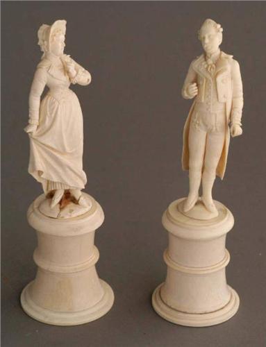 IVORY FIGURES,6 3/8" high <BR> lady figure cracked and glued <BR> at base, 19th century <BR> Continental U.S. shipping not including insurance, $30 <BR>
