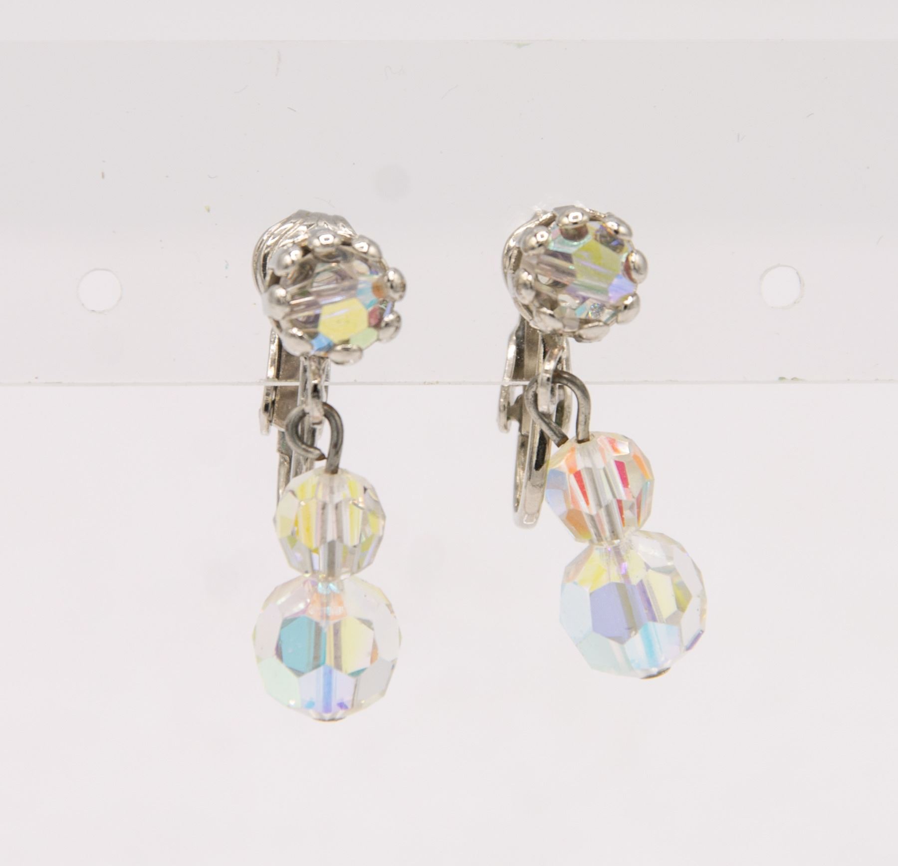 PAIR OF CUT CRYSTAL DROP EARRINGS