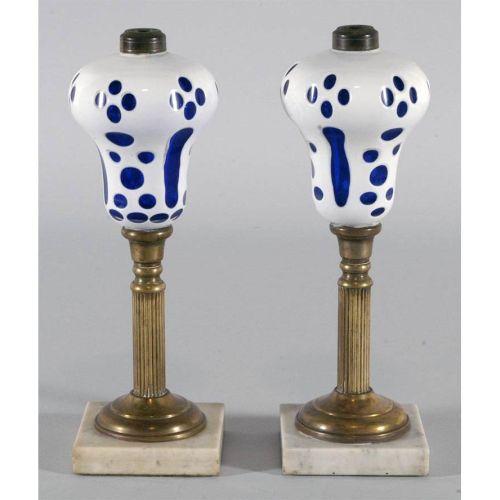 PAIR OF CUT TO CLEAR FLUID LAMPS 13" high, 19th century CONDITION REPORT: no problems. PACKING AND SHIPPING: We offer packing (double boxed in most cases) and shipping of this item within the Continental United States by USPS or UPS (our choice- boxes over 30lbs or oversized may be recalculated based on buyer's location), NOT INCLUDING INSURANCE (it will be added when we know the sales price) for $40