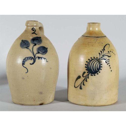 PAIR OF DECORATED STONEWARE JUGS each two gallons, 19th century, CONDITION: a few minor bruises and chips,