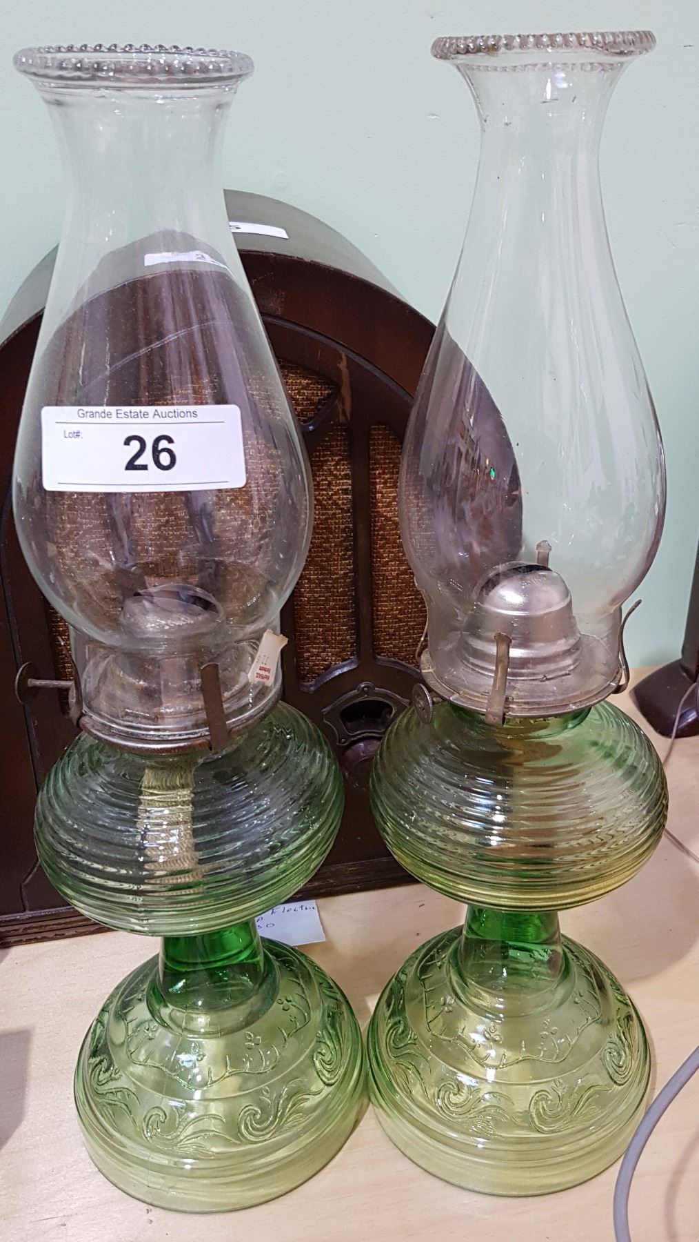 PAIR OF DEPRESSION GLASS OIL LAMPS
