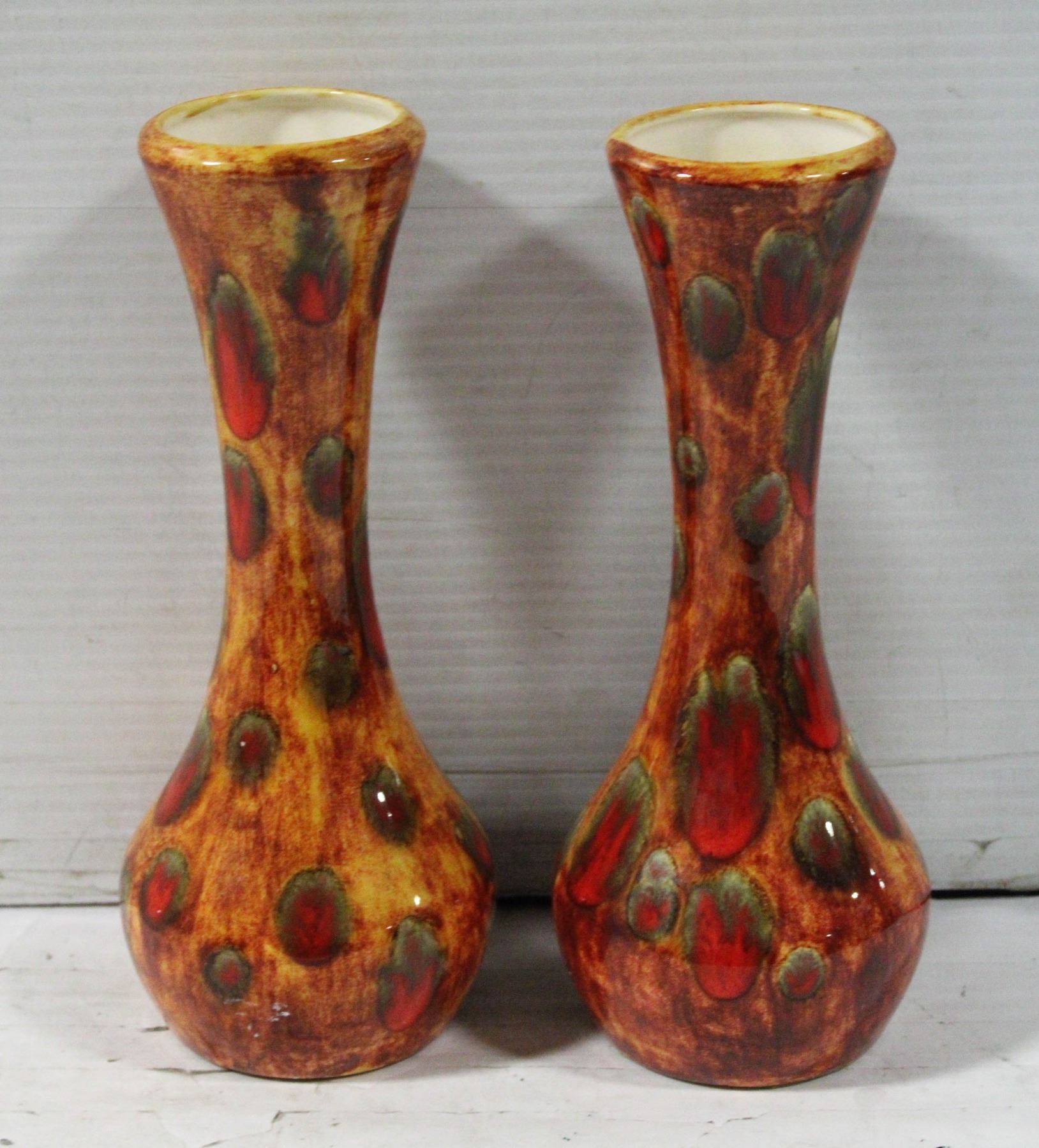 PAIR OF DRIP GLAZE VINTAGE MCM 9.5" BUD VASES