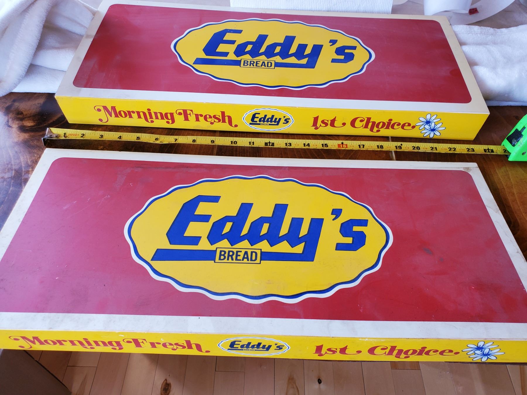 PAIR OF EDDY'S BREAD SHELF LINERS WITH ADV. & 2" OVERHAND