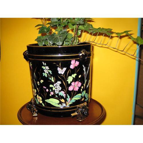 <tr><td>Title:PAIR OF ENAMELLED BLACK CACHE POTS</td></tr>