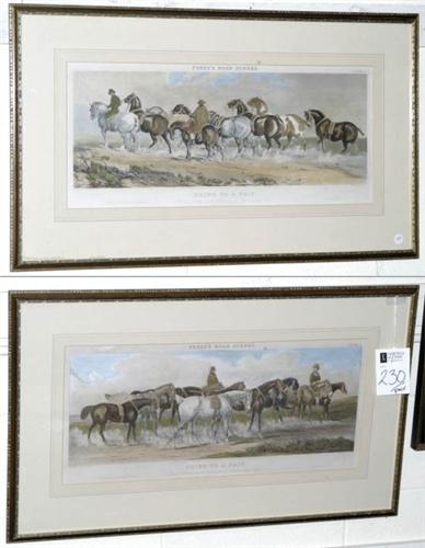 PAIR OF ENGLISH LITHOGRAPHS, Fores Road Scenes, 11"x25" sight, 19th century, SHIPPING: See recommended third party shippers. This item can't be packed or shipped by seller.