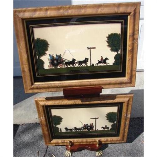 </font></strong>Mid-20TH Century Pair of Coach Prints depicting The London and Oxford Coach. Actually the one is depicted the London and Oxford Coach and the other one that is going in the opposite direction is the Oxford to London Coach. Nicely framed and total measurement of each matching frame is 18" x 13".