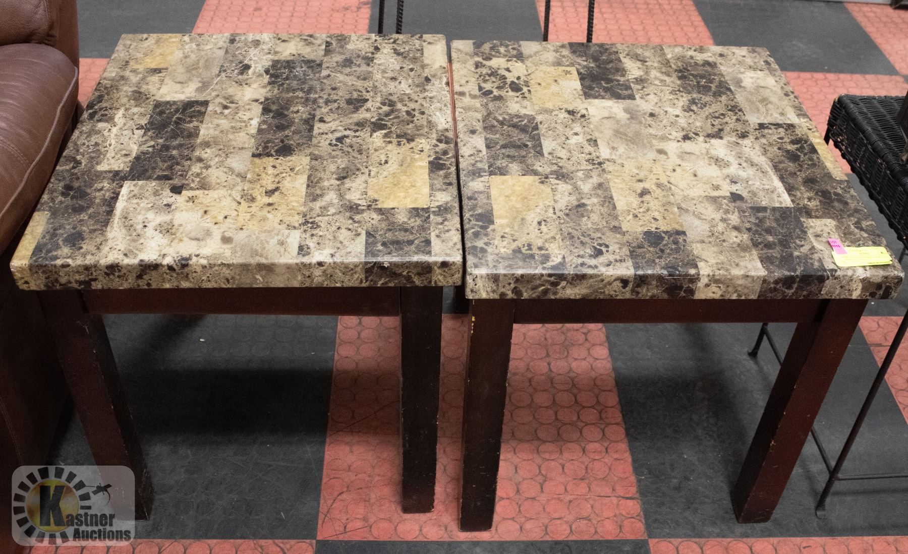 PAIR OF FAUX MARBLE TOP END TABLES 22" X 20" X 21"
