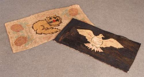 PAIR OF FIGURAL HOOKED RUGS an eagle and a cat the largest 39”x20” <BR>condition: excellent