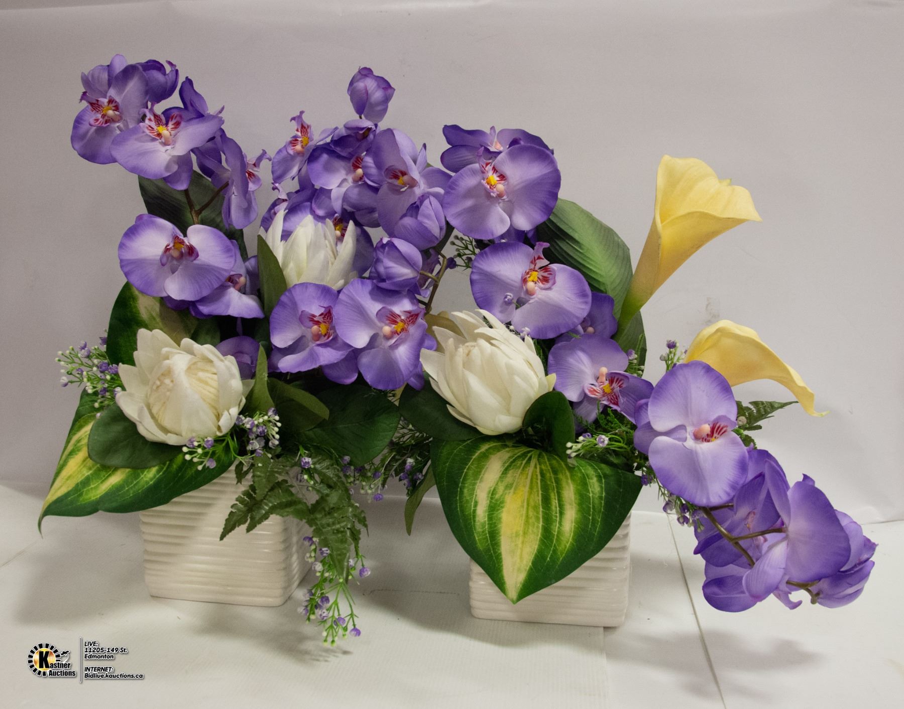 PAIR OF FLORAL ARRANGEMENTS, SILK, LILAC &
