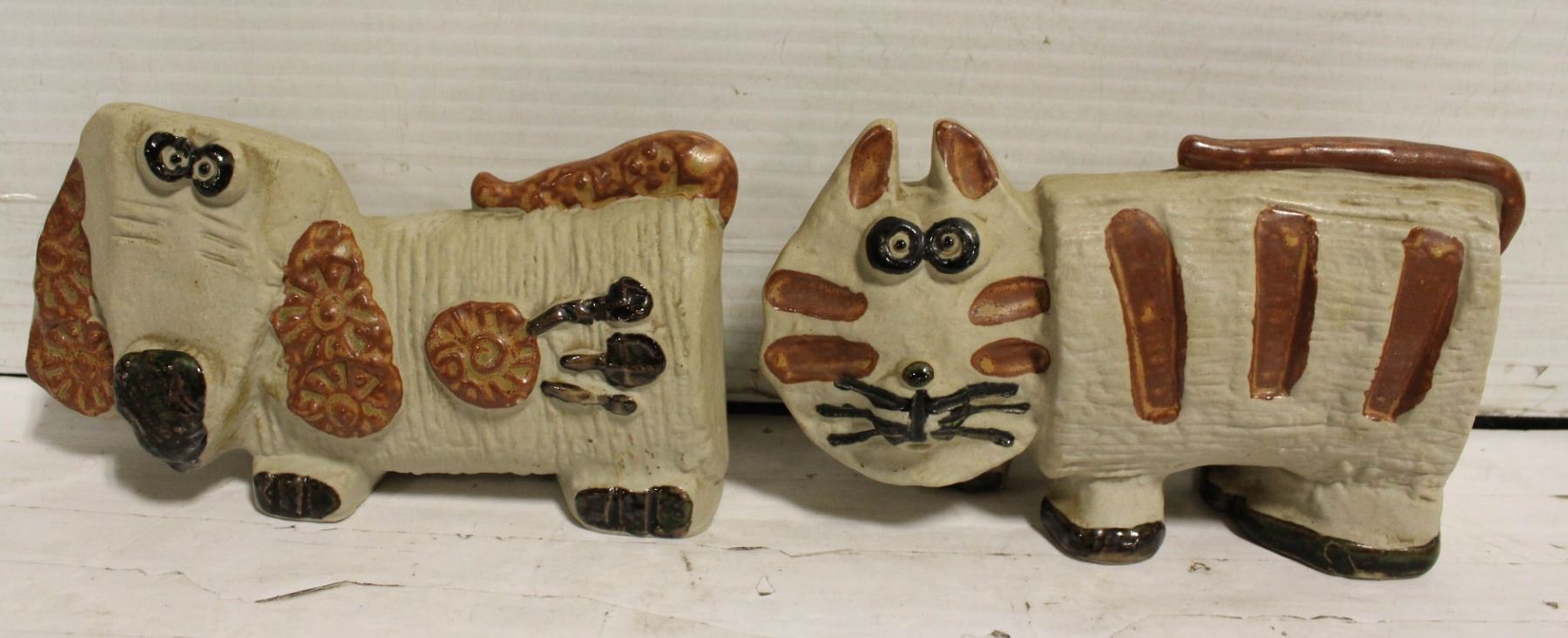 PAIR OF FOLK ART CAT & DOG COIN BANKS