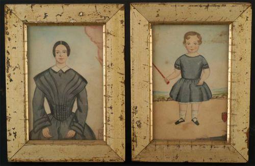 "PAIR OF FOLK MINIATURE PORTRAITS, each 5""x3 1/4"" later framed packing and shipping (excluding insurance) $30"