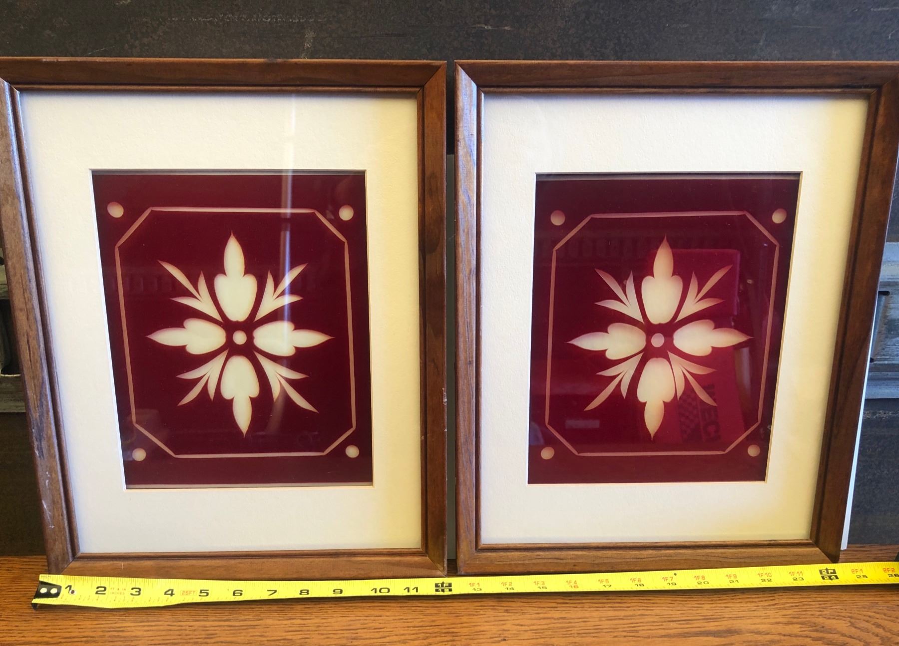 PAIR OF FRAMED ANTIQUE RUBY GLASS PANES