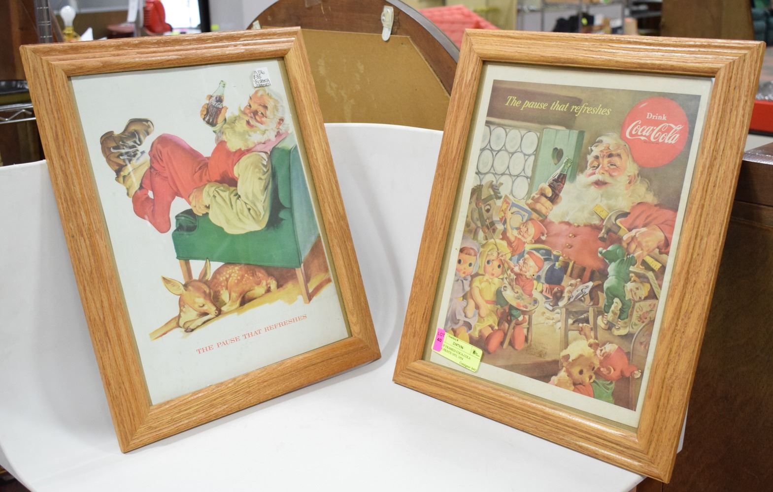 PAIR OF FRAMED COCA-COLA SANTA PRINTS 1953, 1954