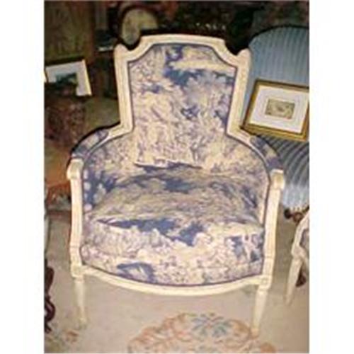 Wonderful pair of painted French Country Armchairs upholstered in a blue and white scenic Toile. These chairs are not only useful and comfortable but they are also very beautiful.