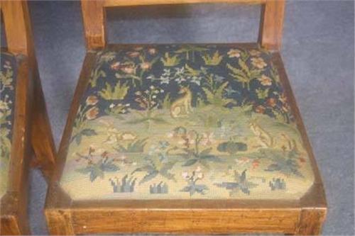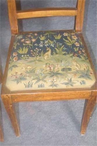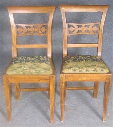 PAIR OF FRENCH COUNTRY SIDE CHAIRS with tapestry seats \ height:36 1/2",seat width:17"