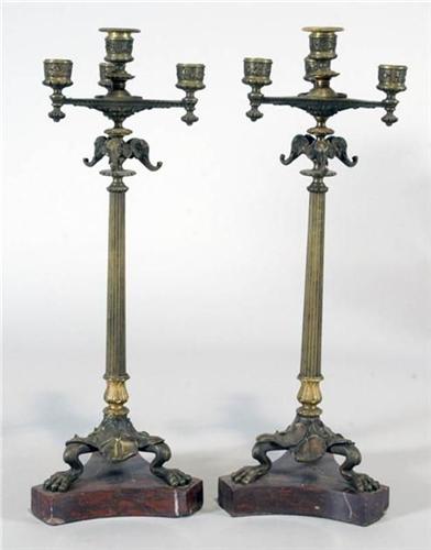 PAIR OF FRENCH EMPIRE STYLE BRONZE CANDELABRA 19" high, late 19th century, CONDITION: excellent, no damage or repairs. PACKING AND SHIPPING BY FAIRFIELD AUCTION WITHIN CONTINENTAL USA (excluding insurance) $40,
