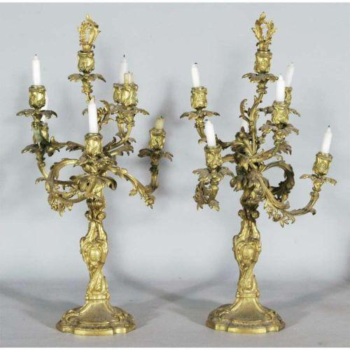 1 PAIR OF FRENCH GILT BRONZE CANDELABRA 27" high circa 1890 CONDITION REPORT: dirty, central arm on one loose. PACKING AND SHIPPING (excluding insurance) by Fairfield Auction to points within the Continental U.S.A. and Canada (all other international must be handled by 3rd party shipper) $100.