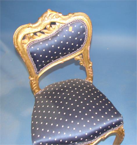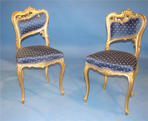 PAIR OF FRENCH GILT WOOD SIDE CHAIRS. Upholstered backs and seats. Ornately carved with leaf decorations. 33” H to top of back