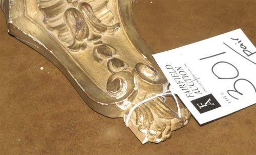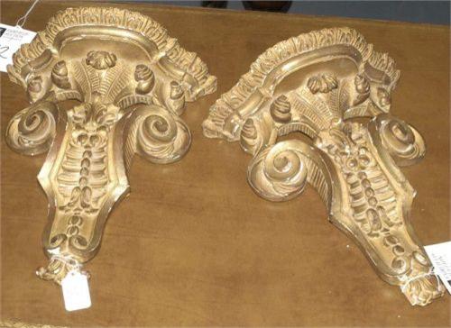 PAIR OF FRENCH GILTWOOD WALL BRACKETS, 13" long, minor losses, circa 1910,, CONDITION: excellent with small loss at bottom of one, PACKING AND SHIPPING BY FAIRFIELD AUCTION WITHIN CONTINENTAL USA (excluding insurance) $30