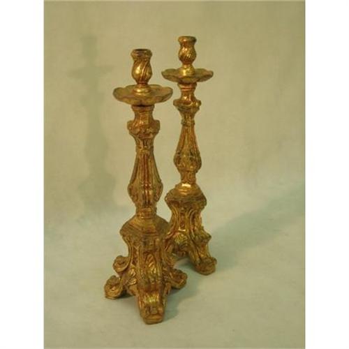 PAIR OF carved and gilded wood candlesticks.