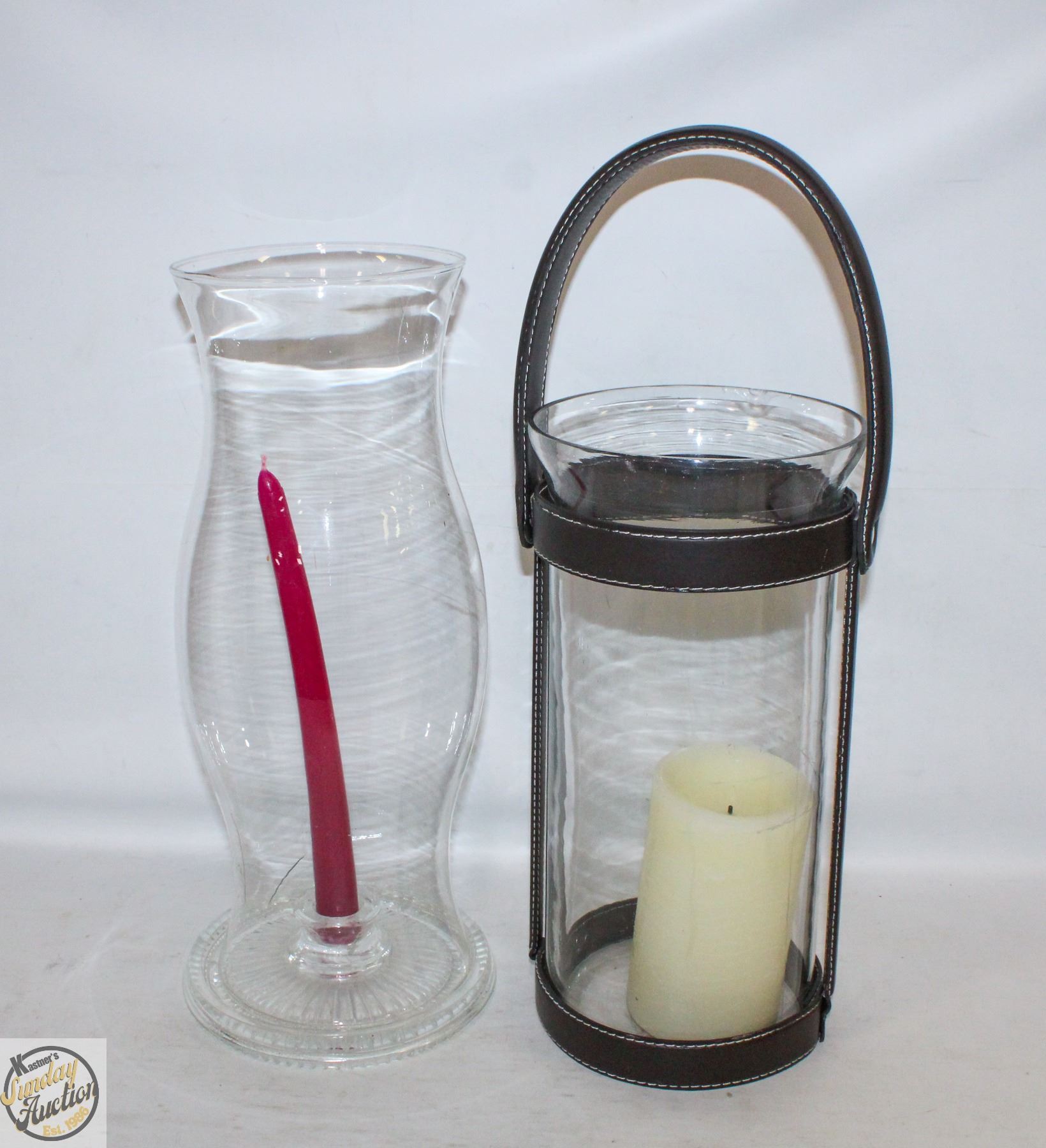 PAIR OF GLASS LARGE CANDLE HOLDERS