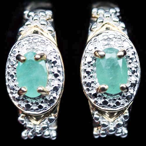 Gorgeous pair of white gold over sterling silver earrings. They have natural green emeralds and diamonds.