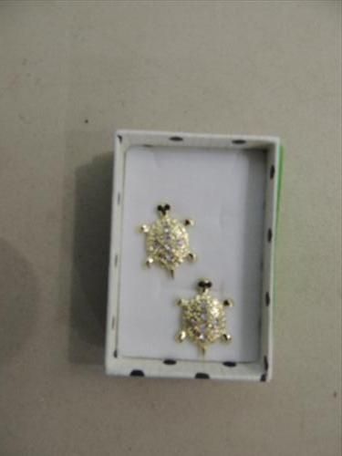 PAIR OF GOLD TONE LADYS TURTLE PIERCED EAR EARRINGS. AS SHOWN. VIEW PICTURE FOR DETAIL.