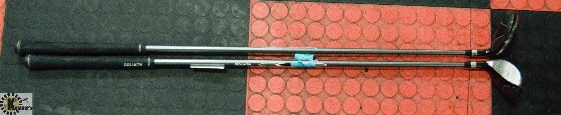 PAIR OF GOLIATH HYBRID GOLF IRONS W/ GOLF SHOE BAG