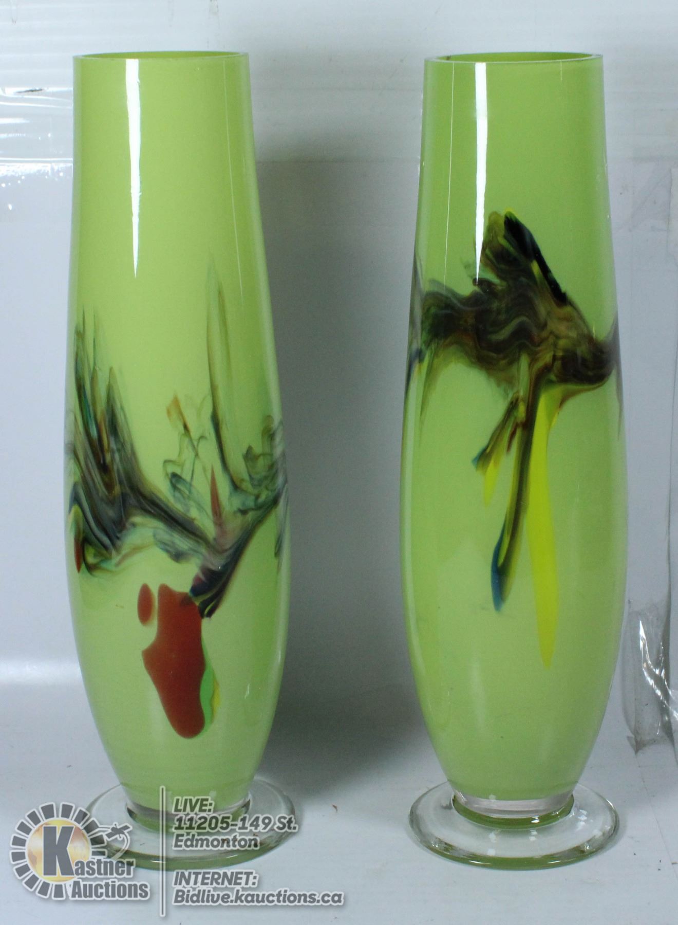 10 INCHES TALL EACH, SWIRLED COLOURS THROUGHOUT