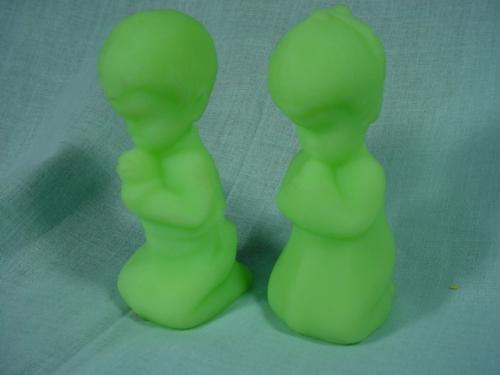 PAIR OF GREEN FENTON SATIN GLASS PRAYING KIDS 4"