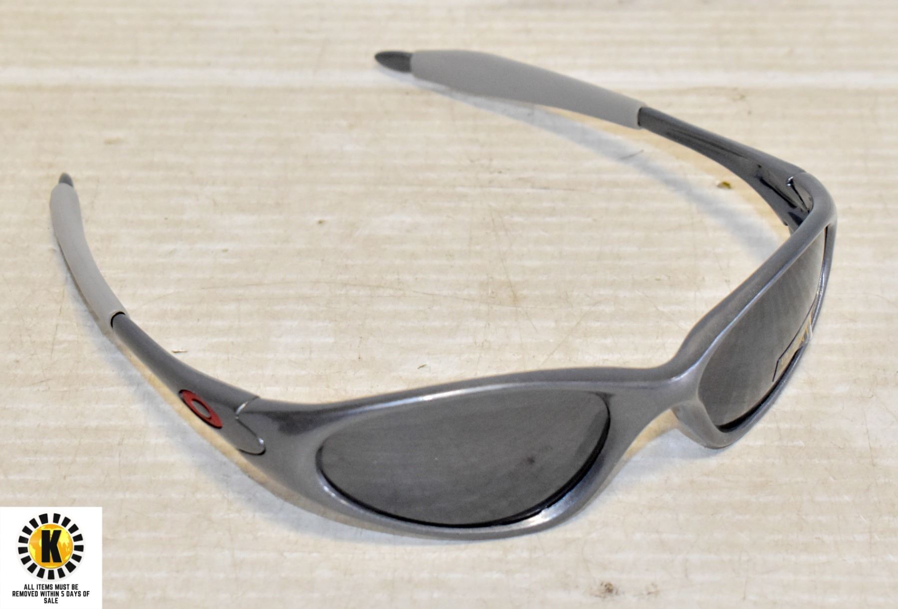 PAIR OF GREY OAKLEY REPLICA SUNGLASSES WITH UV400 PROTECTION. ALL ITEMS MUST NE REMOVED WITHIN 5 DAYS OF SALE