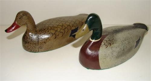 PAIR OF HALF-SIZE MALLARD DECOYS. Consists of drake and hen. Unknown carver. 7.25" L