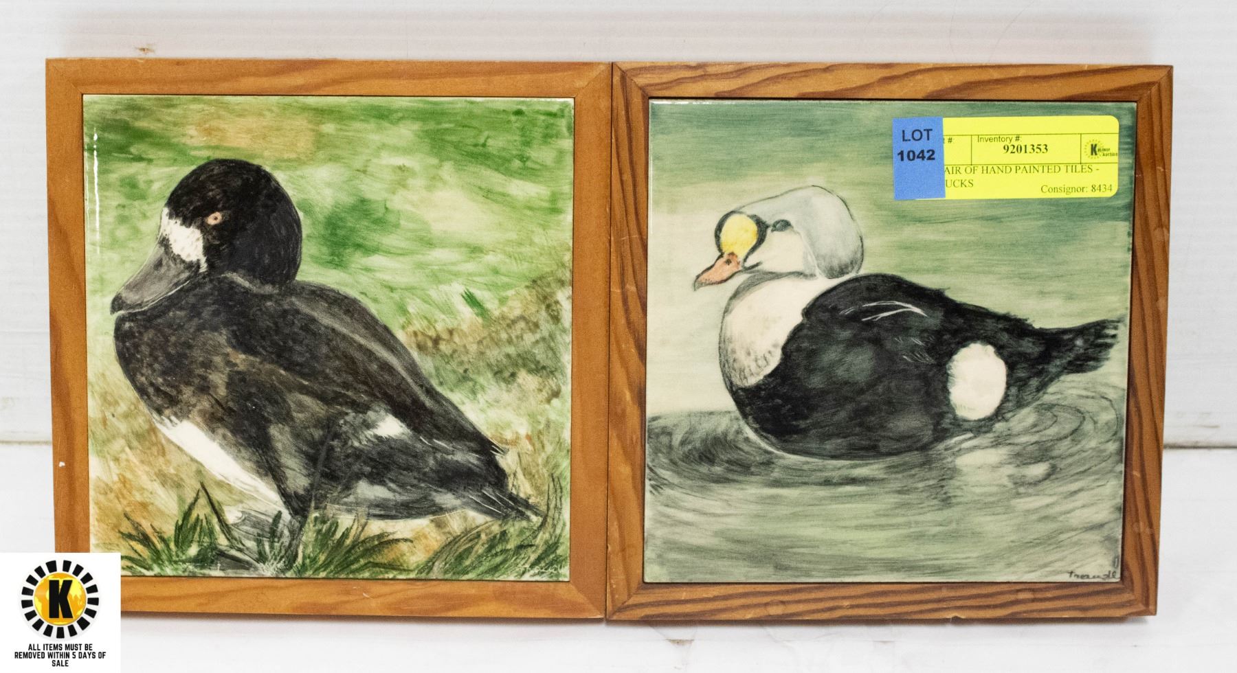 PAIR OF HAND PAINTED TILES - DUCKS