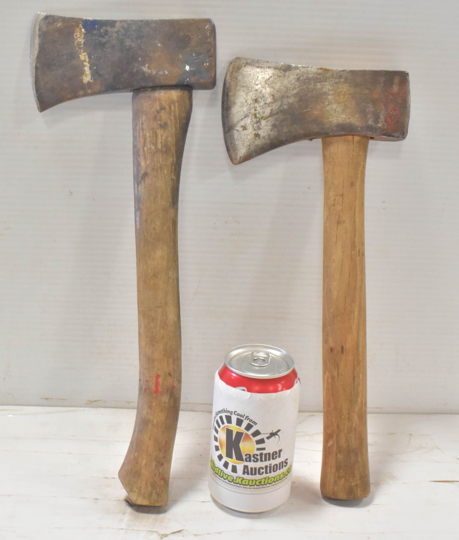 PAIR OF HATCHETS WITH WOOD HANDLES
