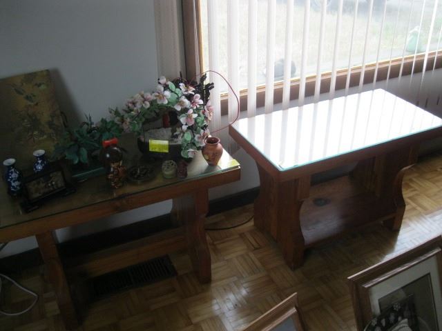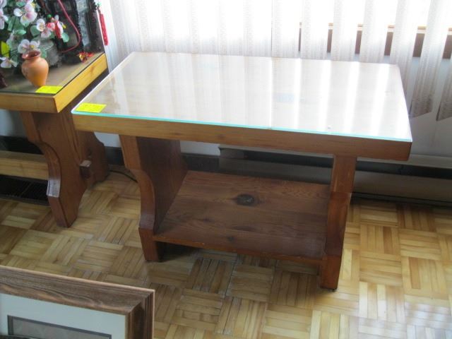 PAIR OF HEAVY WOOD END TABLES