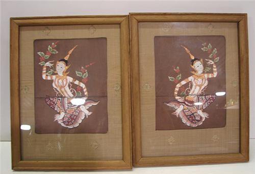 PAIR OF HINDU PAINTINGS. Both paintings depict a female figure and have linen borders. 10” x 12.5” framed