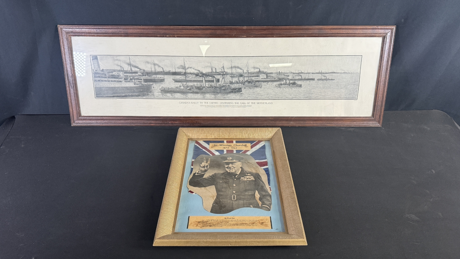 PAIR OF HISTORICAL FRAMED PRINTS - "CANADA'S RALLY TO THE EMPIRE" & WINSTON CHURCHILL