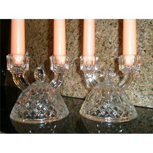 WE PRESENT TO YOU A PAIR OF IMPERIAL GLASS CO. CANDLE STICKS. SHOWING THE "TRADITIONS" PATTERN. C.1930-40. THIS STYLE WAS MADE FOR SEARS AND SOLD BY SEARS. THIS PAIR IS IN VERY NICE CONDITION AND HIGHLY COLLECTIBLE. SHOWING VERY LITTLE USE. PIECE HAS A WATERFORD STYLE CUT WITH PRISMATIC SWING ARMS. ABSOLUTELY GORGEOUS PIECES AND A PAIR AT THAT MAKES FOR A RARE FIND. WE CHARGE ONLY ACTUAL SHIPPING AND INSURANCE COST. NO PACKAGING AND HANDLING FEES ADDED.