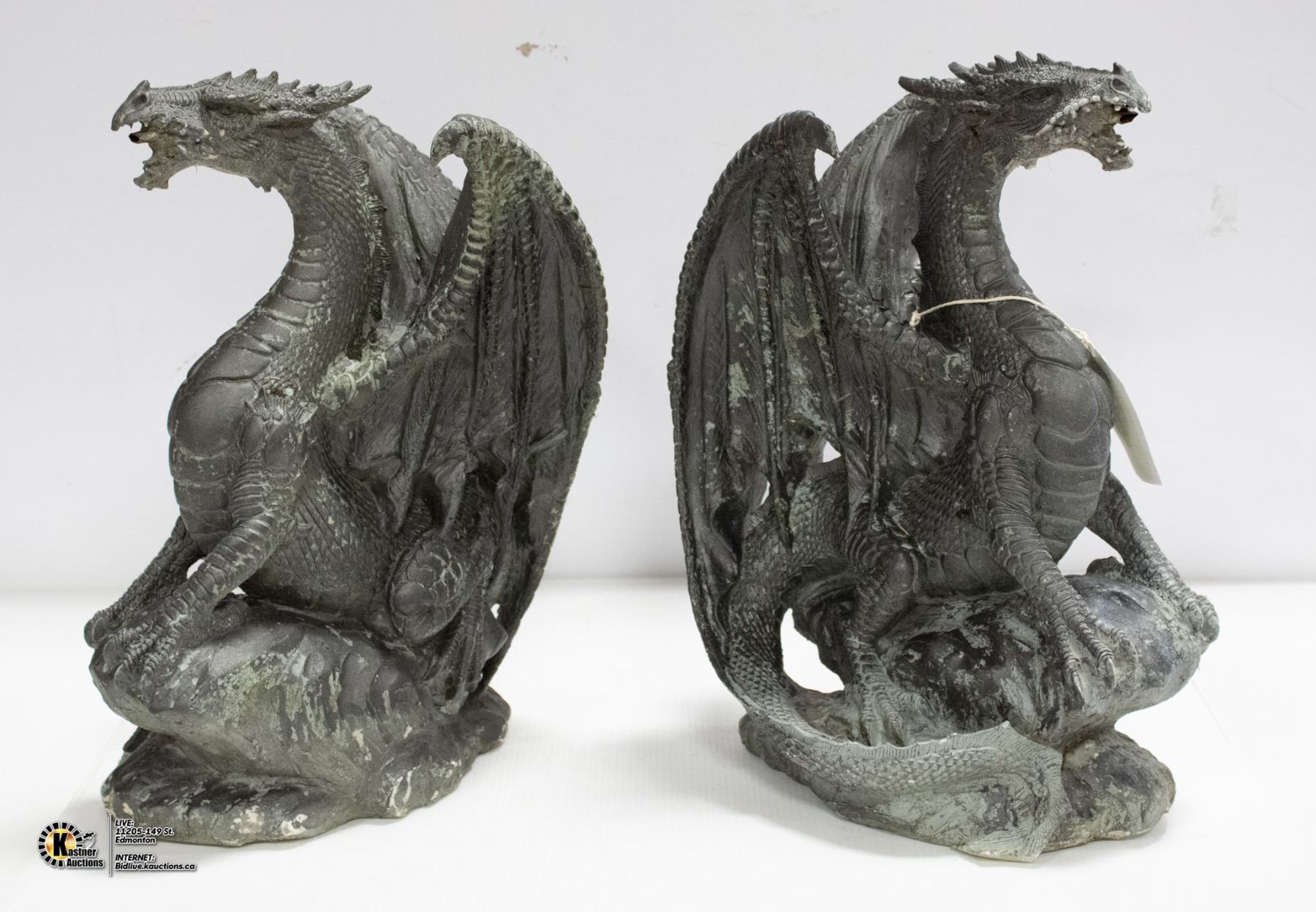 PAIR OF INDOOR/OUTDOOR DRAGON STATUES 15" TALL