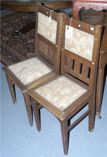 PAIR OF INLAID ARTS & CRAFTS SIDE CHAIRS, condition: water damage to finish 2" up legs, circa 1910, SHIPPING: See recommended third party shippers. This item can't be packed or shipped by seller.