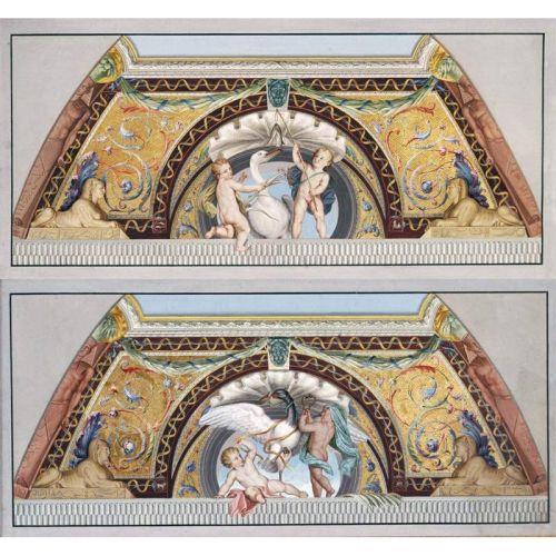 PAIR OF ITALIAN GOUCHE PANELS each 10 1/2"x 24 1/2", 19th century CONDITION REPORT: both with a few very minor light stains at right side.