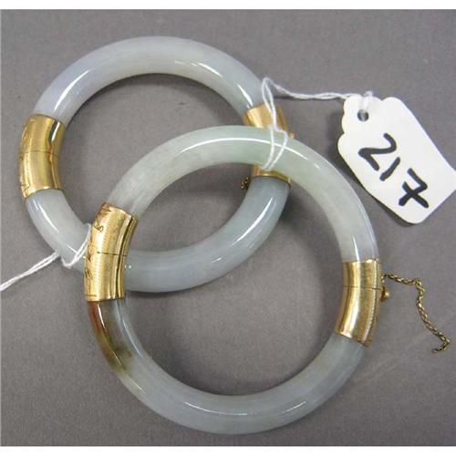 PAIR OF JADE 14KT BRACLETS