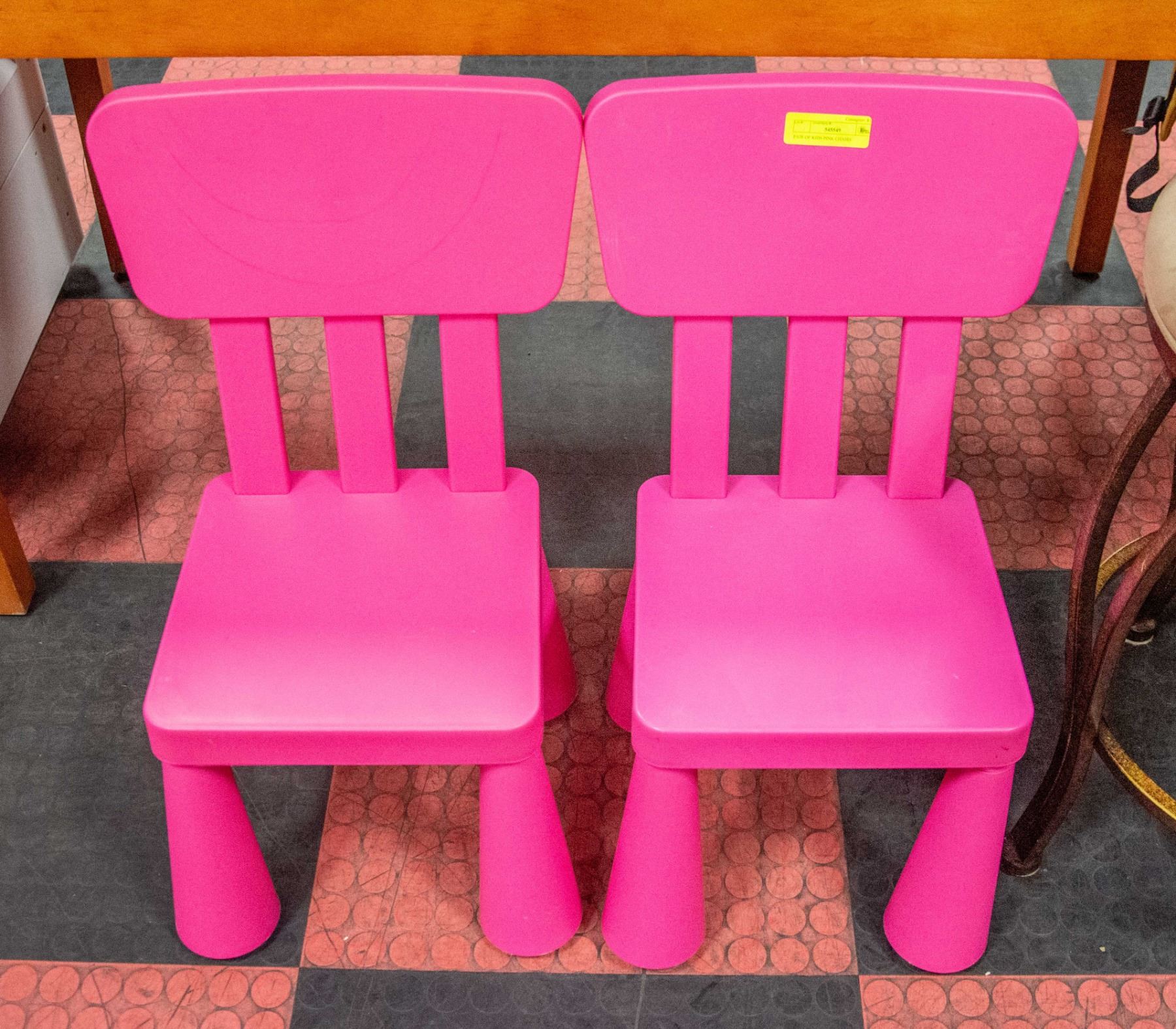 PAIR OF KIDS PINK PLASTIC IKEA CHAIRS