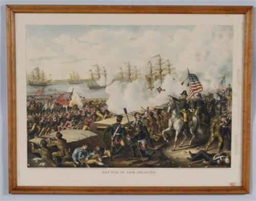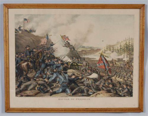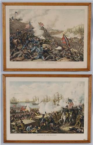 PAIR OF KURZ & ALLISON CIVIL WAR LITHOGRAPHS "Battle of Franklin" and "Battle of New Orleans" late 19th century, CONDITION: light toning, tears and tape residue in margins,