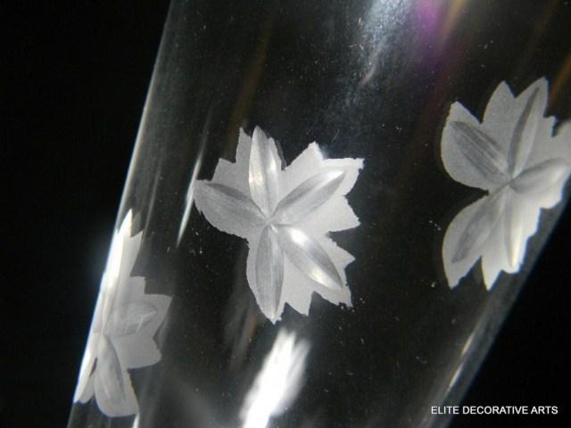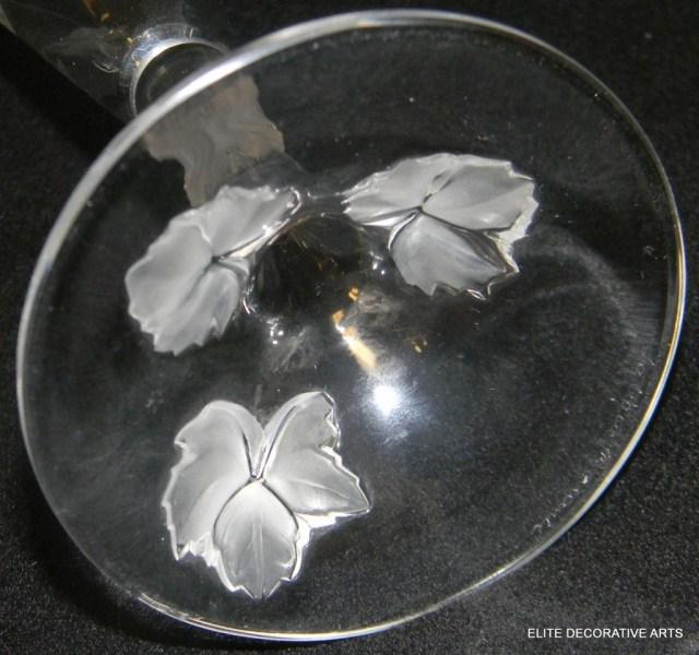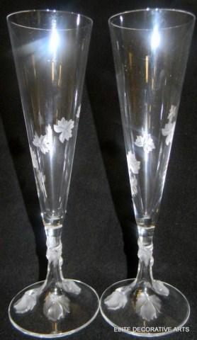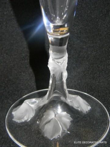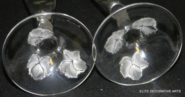 Each piece has a raised and etched leaf design. Script marked to bottom. Measures 10" h.