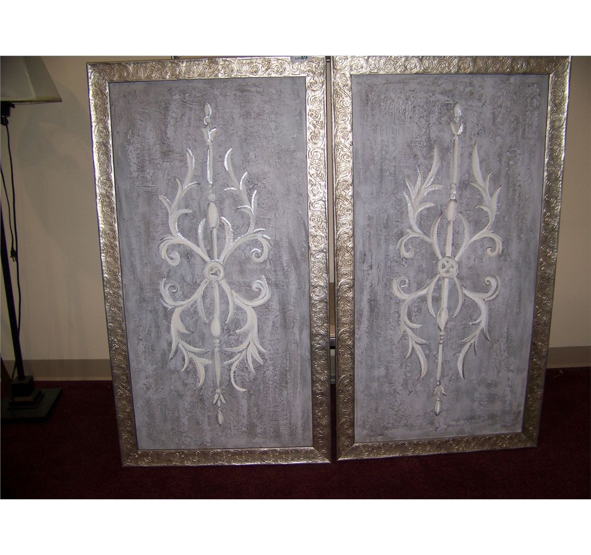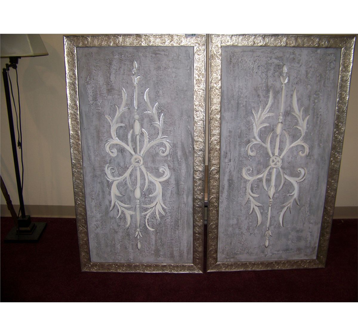 PAIR OF LARGE, MATCHING SILVER FRAMED DECORATIVE PICTURES